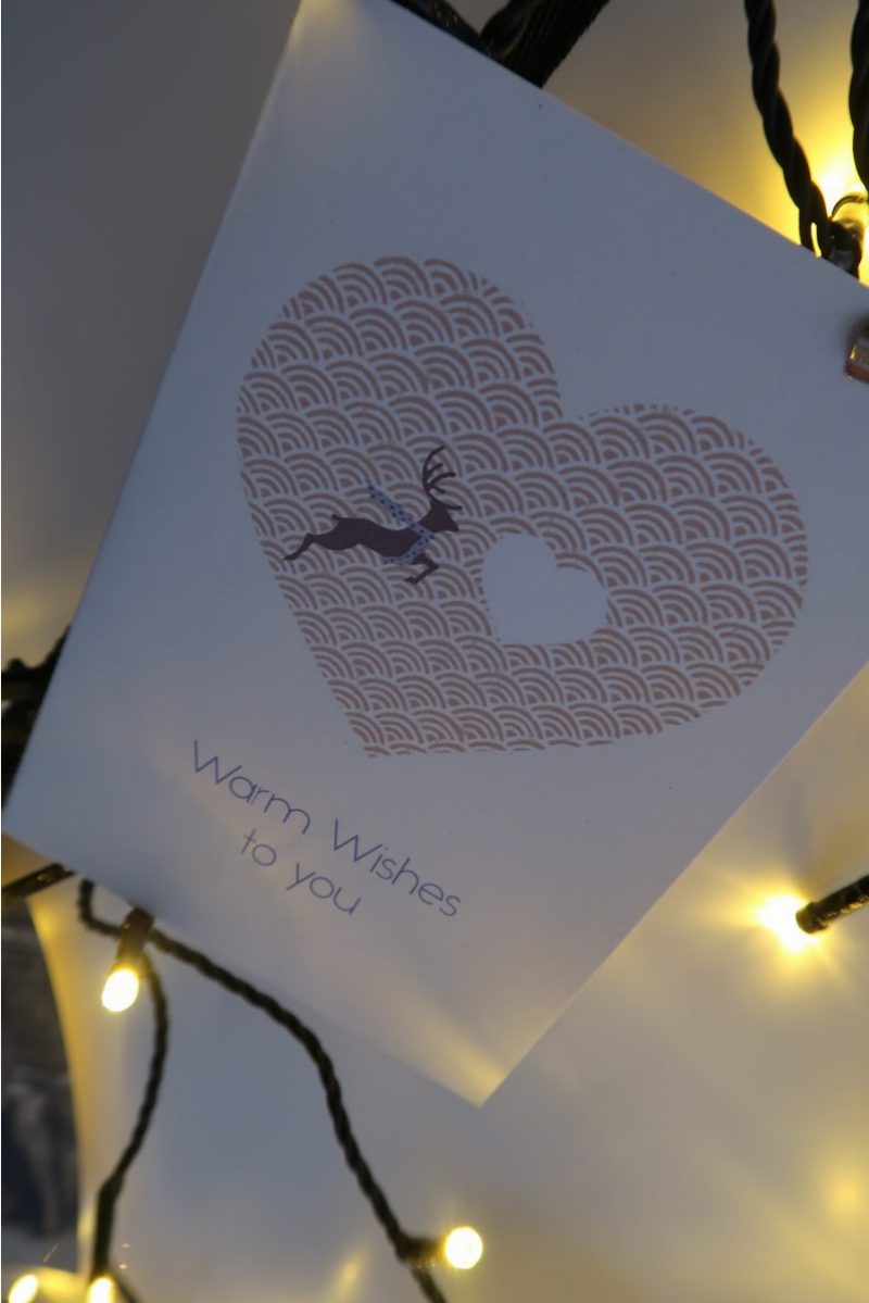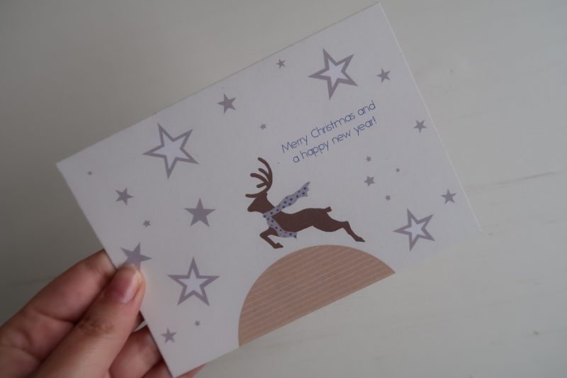 Koetjes & Kaartjes verkoopt niet alleen papierwaren – zoals kaarten, posters en ander papieren spul – maar ook woonaccessoires en babykleertjes! Haar kerstkaarten van dit jaar zijn lekker modern zwart-wit met teksten als “Meet me under the mistletoe” en “Oh deer!”.