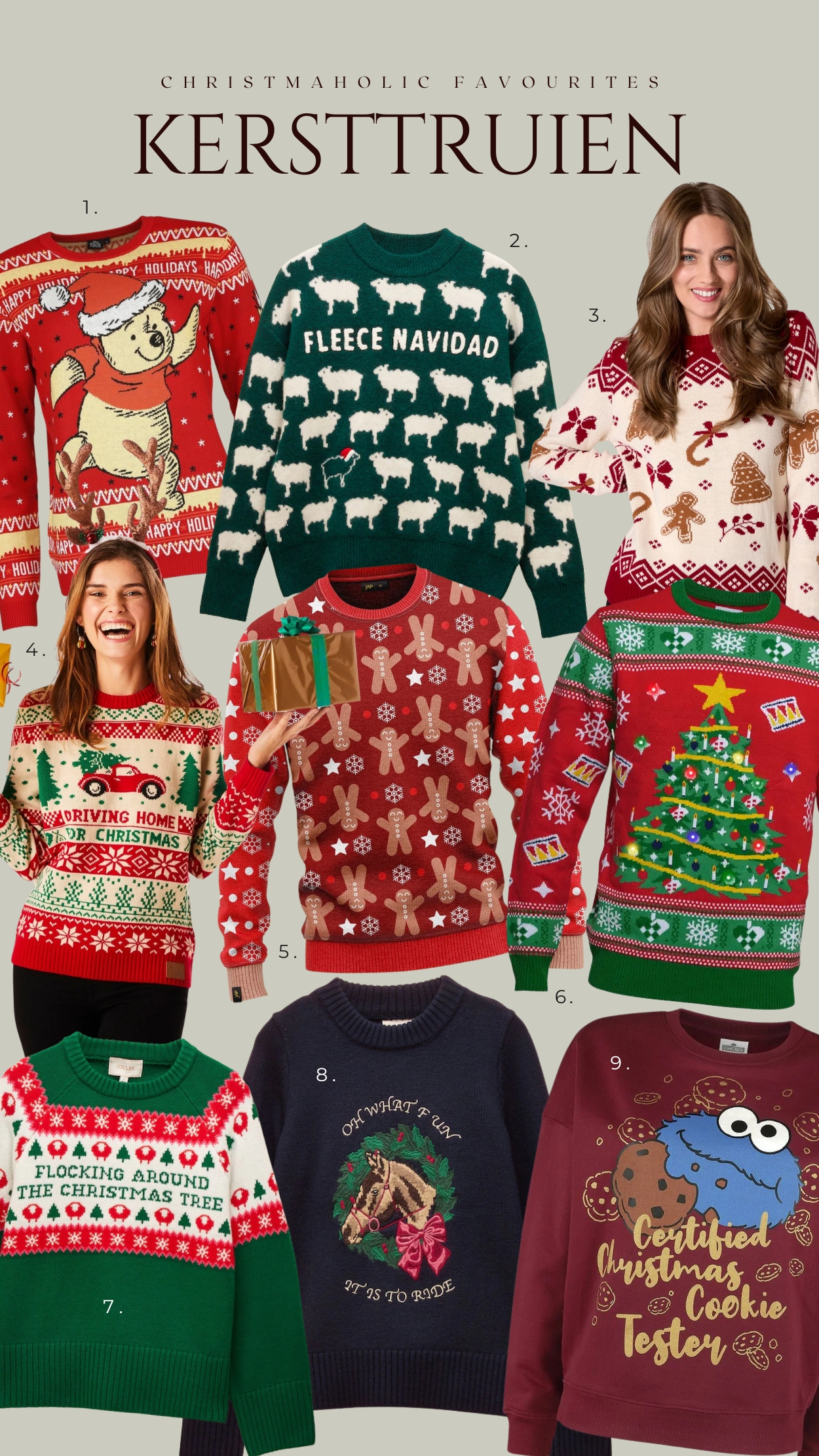 Oké, tijd voor wat meer informatie over de kersttruien op de collage hierboven: