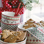 Omdat ik op de foto’s de gingerbreadkoekjes zag, moest ik meteen denken aan de bakvormen die hier straks onder de kerstboom liggen. Die zijn van Nordic Ware. Van Nordic Ware zijn er bijvoorbeeld muffinbakvormen met schattige kersthuisjes, een tulbandvorm dat eruitziet als een bos kerstbomen, een cakevorm met het reliëf van drie gingerbreadmannetjes enzovoorts! Dit soort baksels passen natuurlijk perfect bij zo’n kerstservies.