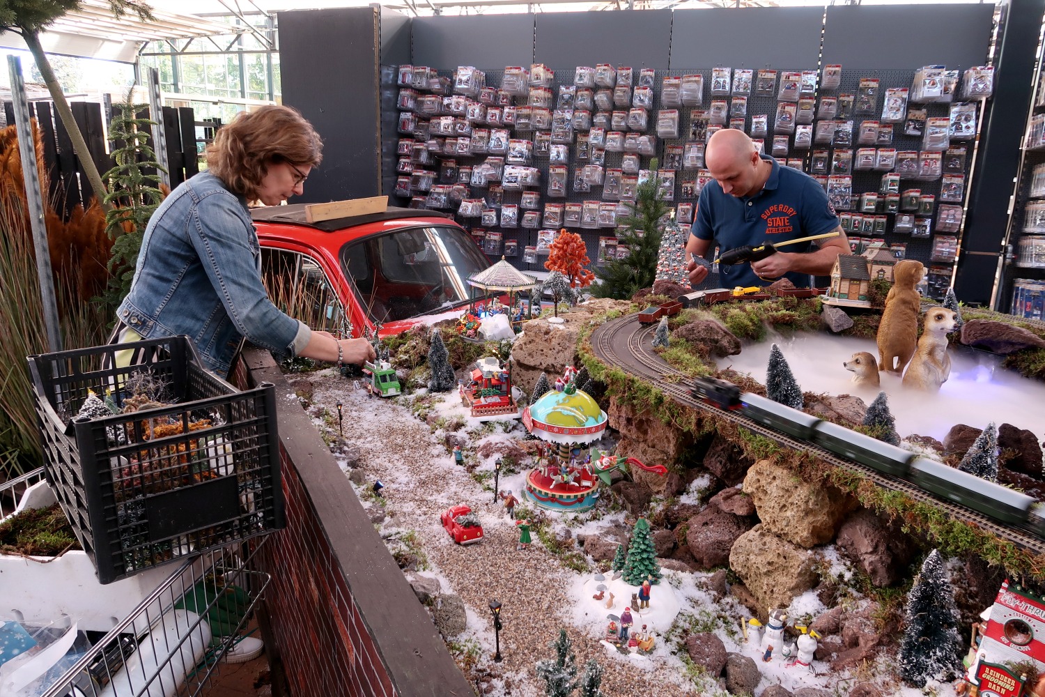 Hoe wordt een kerstshow in een tuincentrum opgebouwd?
