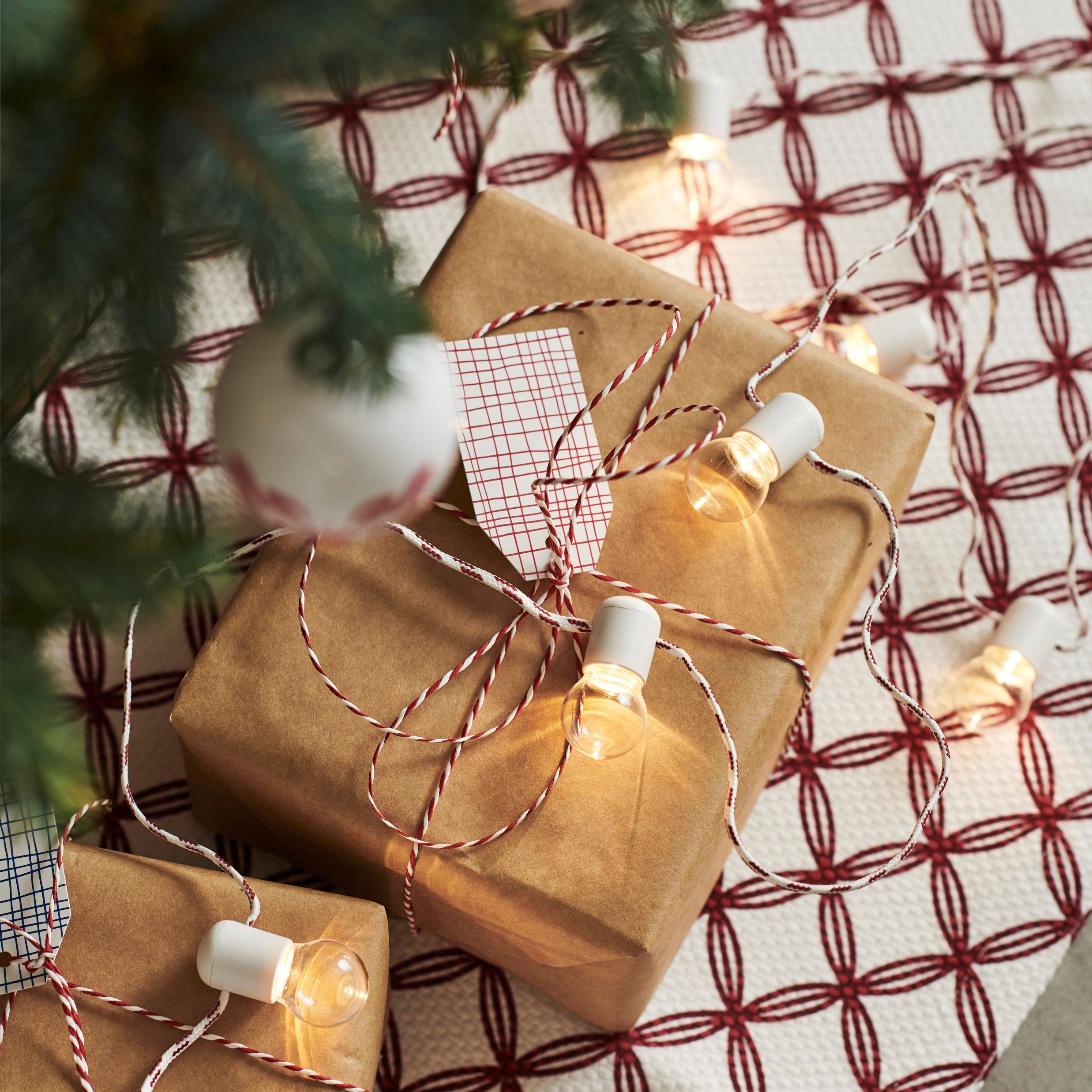 Mijn favoriete onderdeel van de IKEA kerstcollectie is zoals altijd: de inpakspulletjes. Vooral de papieren tasjes in rood-wit vind ik erg mooi. De rood-witte cadeaulabels mogen er eveneens wezen. Ook de kerstboomvormige cadeaulabels ga ik zeker weten kopen. Kies je thuis voor een winterse stijl kerstversiering dit jaar (zou best kunnen, want die is echt hartstikke in)? Dan is de blauw-witte variant van de inpakspulletjes misschien een betere match. Want yes, die is er dus ook!
