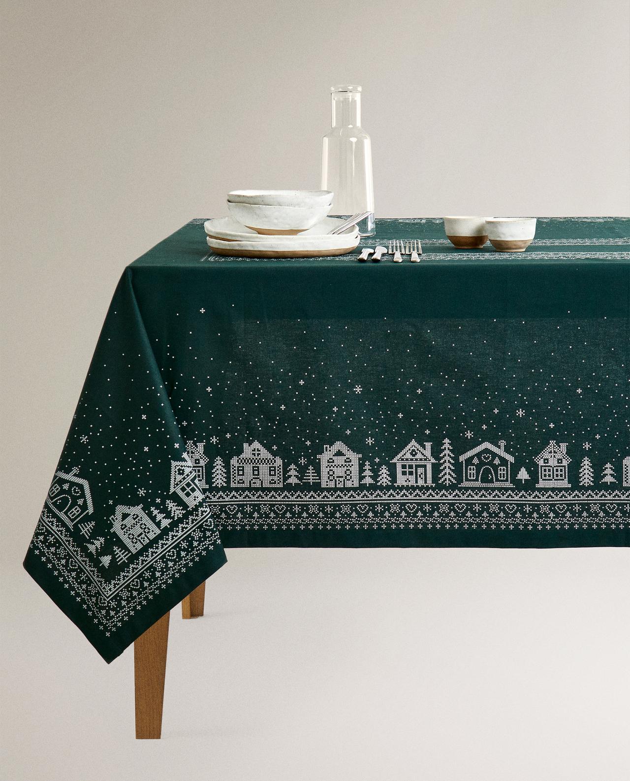 Het groene tafelkleed met de huisjes vind ik heel leuk. Alleen werkt het linkje niet