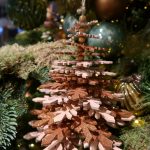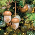Je zou verwachten dat al dat groen wegvalt tegen een groene boom, maar dat is helemaal niet zo! Het vormt natuurlijk wel een rustig geheel. Als we kijken naar de kerstdecoratie voor in de boom, dan zien we niet alleen ‘standaard’ groene, bruine en witte ballen, maar ook veel hout. En natuurlijk allerlei versieringen die geïnspireerd zijn op de natuur. Denk aan ornamenten in de vorm van eikeltjes, blaadjes, dennenappels en diertjes. Het ornament in de vorm van kerstboom van vilt op één van de foto’s hieronder heeft echt mijn hart gestolen. Love it!