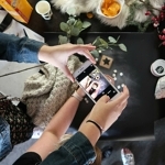 Daarna volgde het leukste onderdeel van de workshop; de praktijk! Iedereen ging aan de slag met handige ondergrondjes, kerstprops en de prachtige kerstcadeautjes met papier van CollectivWarehouse. Het ging er professioneel aan toe. Er kwamen heuse reflectieschermen en daglichtlampen aan te pas. Iedereen was druk in de weer op de grond en op tafels. Soms waren er wel vier paar handen nodig voor één foto. En enkele mensen gingen er zelfs bij liggen. Je moet wát over hebben voor de perfecte foto!