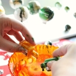 Goed voorbereid? Dan gaan we van start. Giet de nagelak in je bakje. Hou het flesje niet te ver van het water. Schenk verschillende kleuren tegelijk in het water en roer eventueel met een satéprikker voorzichtig een beetje door elkaar. Zorg dat de laag nagellak in het water niet te ‘dik’ is, maar een beetje verspreid over het water ligt. Dan wordt je bal straks mooier.