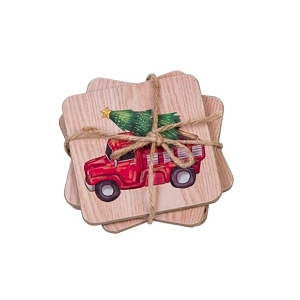 Hoop dat ze de onderzetters met auto/ kerstboom ook daar hebben.