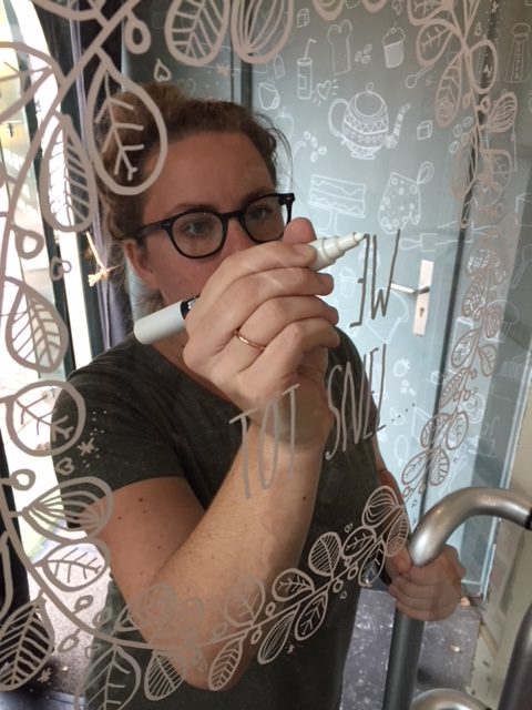 Een goede plek om inspiratie op te doen voor je eigen kerstramen, zijn winkelruiten en etalages. Waar ik bijvoorbeeld heel veel blij van word, zijn de raamtekeningen die de dames van Ideeën Studio maken bij een koffietentje in mijn woonplaats.