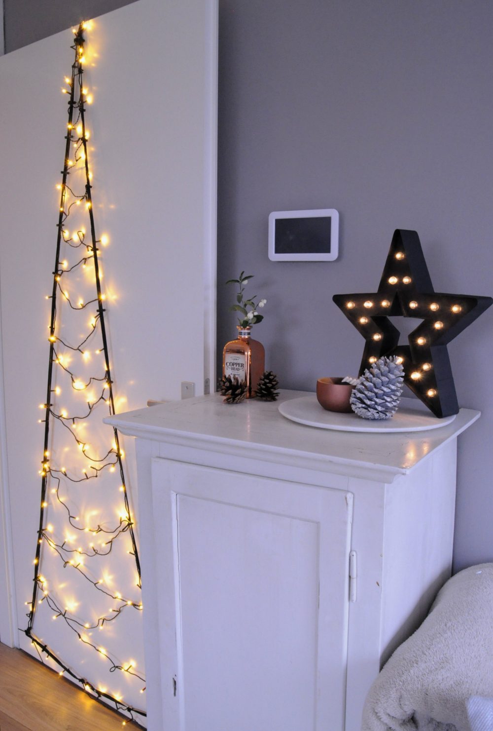 Omdat ik bijna hele dagen op bed lig, zou ik deze op de deur maken waar ik op kijk, daar zou ik er super van genieten. Meer dan van op mijn buiten duer, die zei ik zelf amper en al staat het super leuk, je wilt zelf toch ook genieten van zo’n leuke boom en met de donkere dagen voor kerst én met kerst kun je geen lichtjes genoeg in huis hebben.