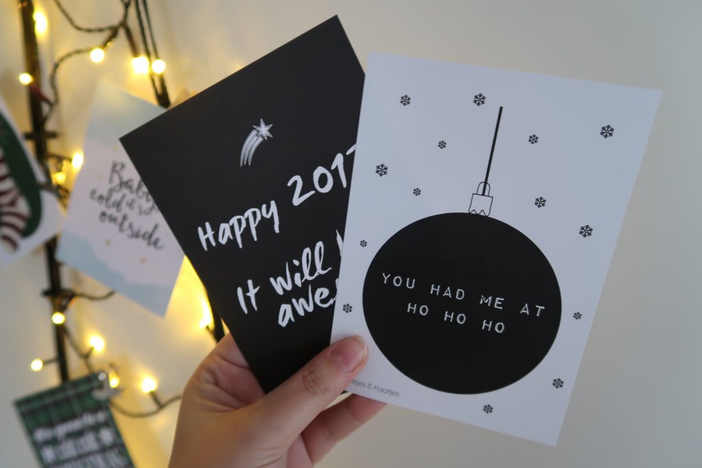 Winkeltjevananne.nl heeft ook hele leuke kaarten (en andere leuke kaarten en spulletjes) in zwart/wit. Vind het wel jammer dat er steeds minder mensen kerstkaarten sturen hoor… toch een van de leukste dingen aan kerst… de plof op de deurmat en dan een stapel gekleurde enveloppen zien liggen ☺️