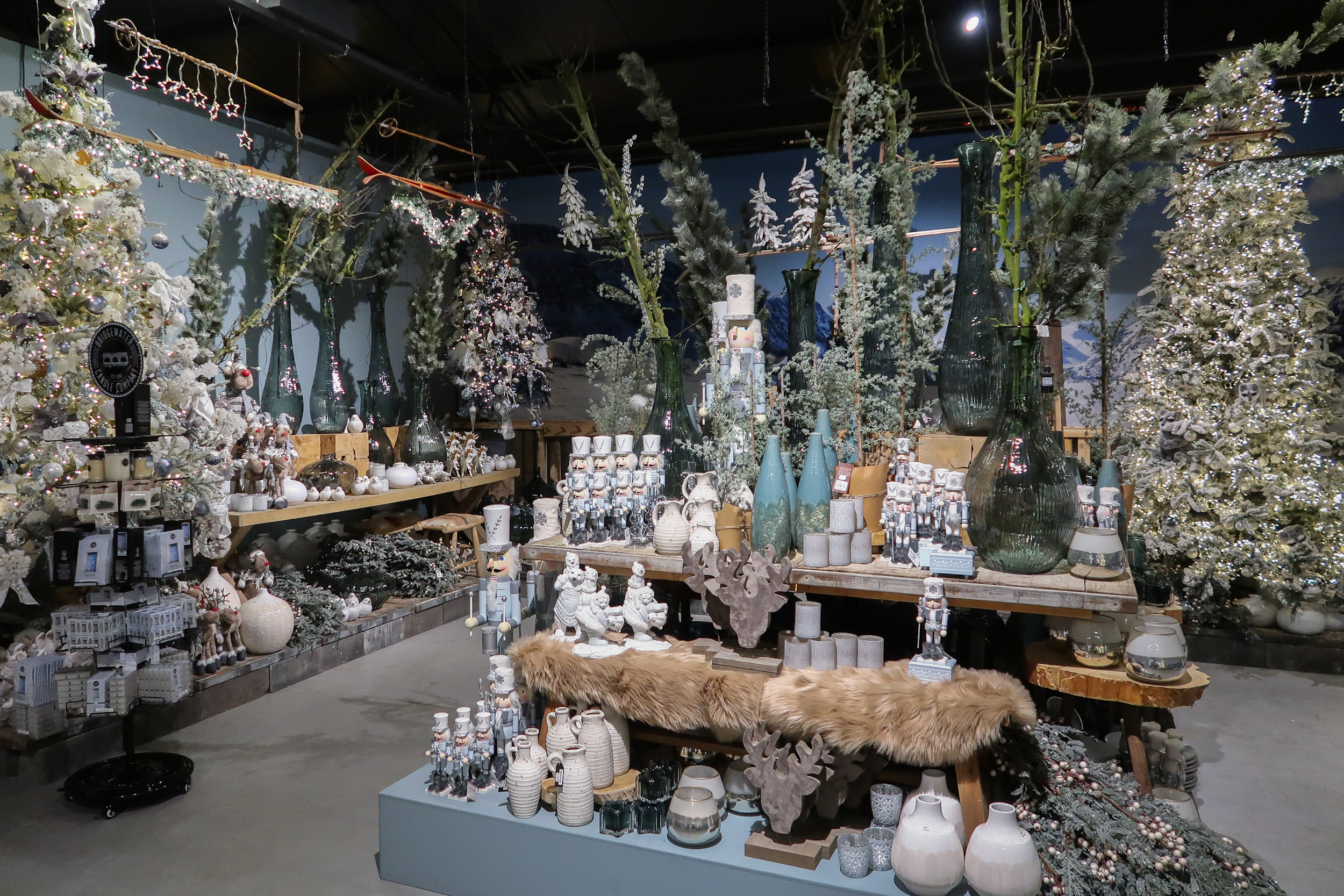 Ik neem je graag mee op een virtuele wandeling door de kerstshow. Het eerste dat je tegenkomt in de ‘koude kas’, zoals dat heet, is het kerstdorp. Dit jaar is het door eigen medewerkers gemaakt. Je vindt hier de nieuwste Lemax-huisjes en mooie presentaties om je aan te vergapen. De komende weken wordt er ook nog een soort ‘rotonde’ slash marktplein gemaakt bij het kerstdorp.
