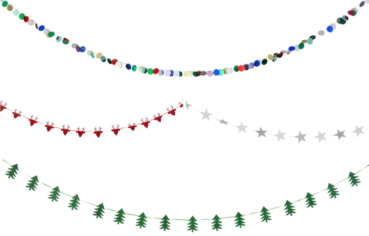 Heel stoer dit jaar zijn de kerstslingers van HEMA. Ze zijn er in allerlei soorten en maten. De Merry Christmas-slinger op de foto helemaal bovenaan deze blog kost €2 en vind je hier. De andere slingers op de foto’s hieronder kosten rond de €1,50 en €2 per stuk en zijn allemaal ongeveer 2 a 2,5 meter lang.